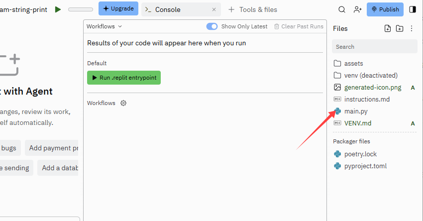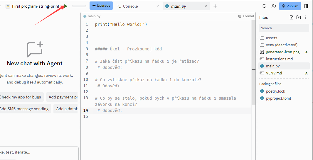 Vpravo nahoře kliknete na tlačítko, které vám zobrazí soubory (main.py, instructions.md)