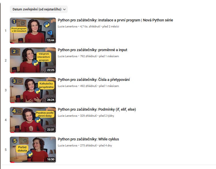 Pokud vás tyto úkoly baví a chcete se posunout dál, kurz Konečně Python je pro úplné začátečníky, kteří chtějí Python konečně pochopit.