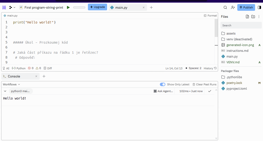 ⭐ Úkol: https://replit.com/@LucieLenertova/First-program-string-print#main.py