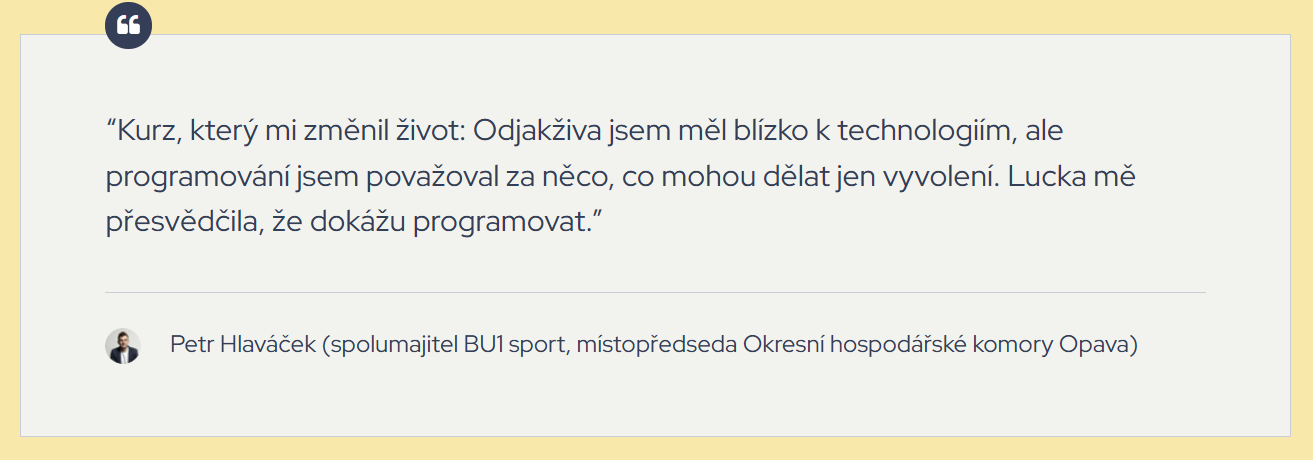 Background story: Původně jsem videa vytvářela po jednotlivých lekcích pro své studenty (na rodičovské jsem učila Python na gymnáziu). Později jsem je spojila do jednoho dvouhodinového kurzu. Dnes si s ním programování vyzkoušely tisíce lidí – od 12letých studentů po padesátníky.